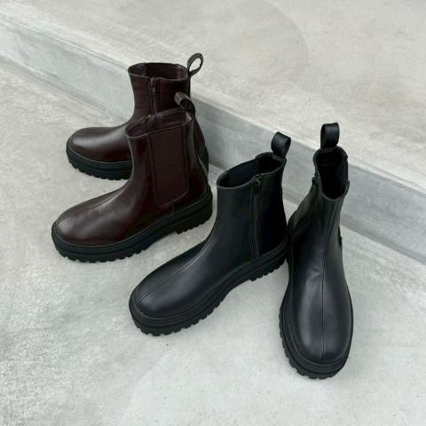 一方はサイドゴア、もう一方は内側ファスナー付きで、デザイン性と実用性を兼ね備えたアイテムです!