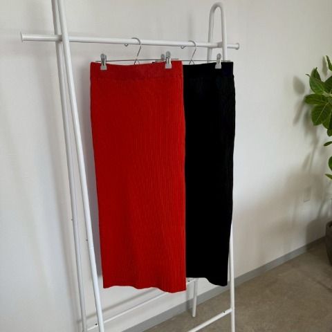 すっきりとしたシルエットが魅力のリブナロースカート。