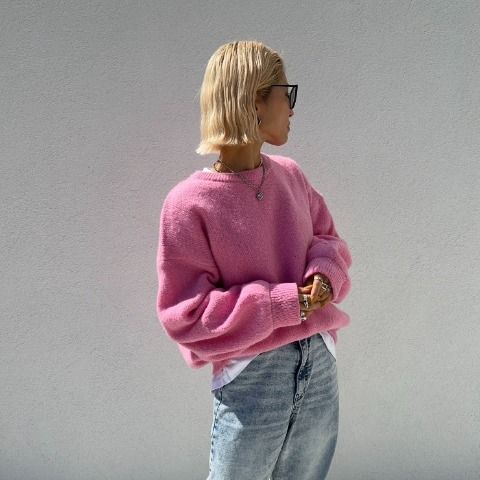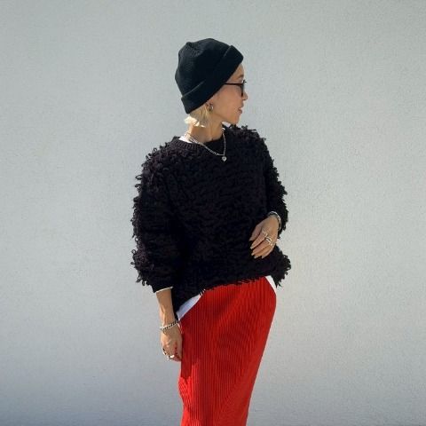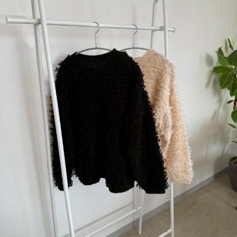 ふんわりとしたループ編みが魅力のニットプルオーバー。
