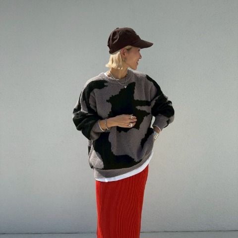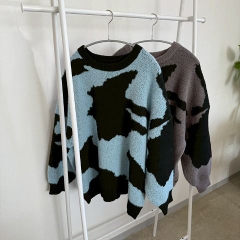 存在感のある柄が特徴的な、ふんわり素材のビッグニットプルオーバー。