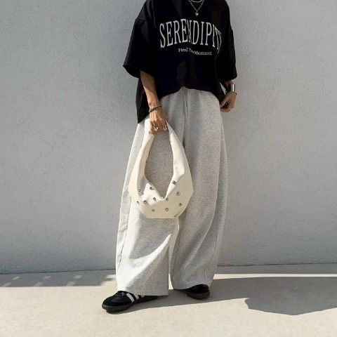 程よいハリ感と弾力が魅力の素材を使用した、ボリュームたっぷりのスエットパンツ。