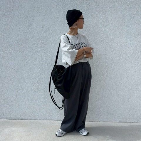 大きめのシルエットが体のラインをひろわず、着るだけで今っぽいバランスに。