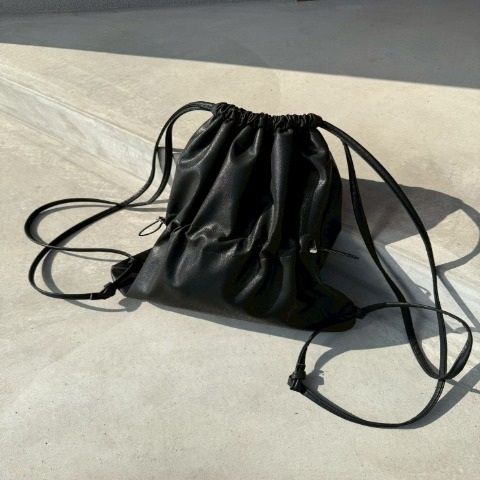 柔らかな合皮素材で、カジュアルにもきれいめにも使える巾着バッグ。