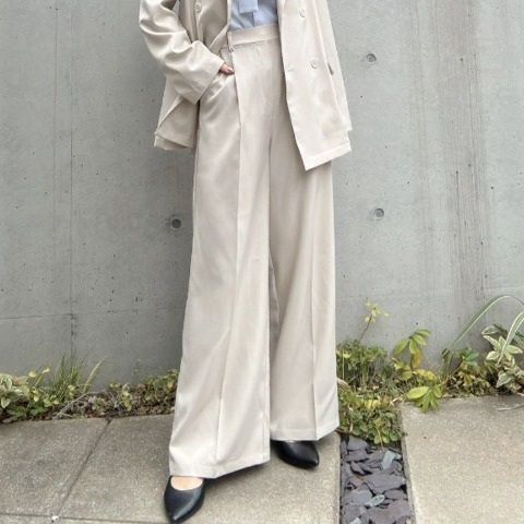 落ち感のある素材とセンタープレスで、脚をきれいに見せてくれるワイドパンツ◎