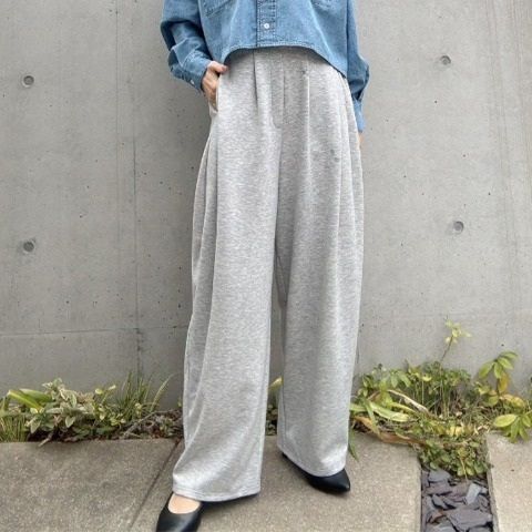 スウェット生地なのにきちんと見えが叶うカーブパンツ◎。