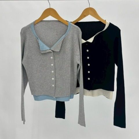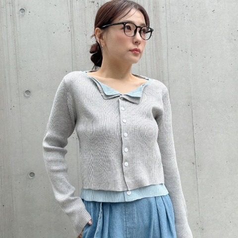 配色デザインの襟元が目を惹く、コンパクトカーディガン◎
