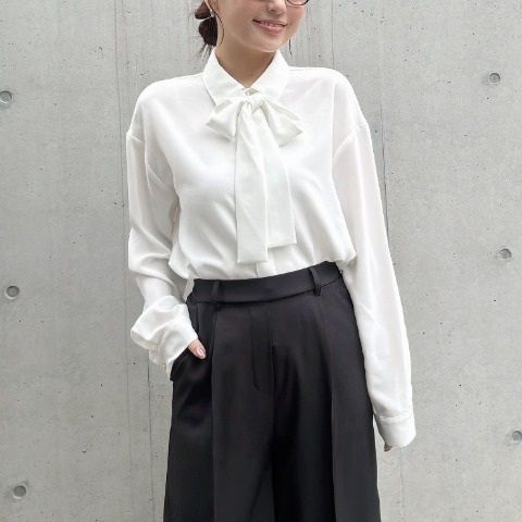 リボンは取り外し可能なので、シンプルなシャツとしても着用可能◎
