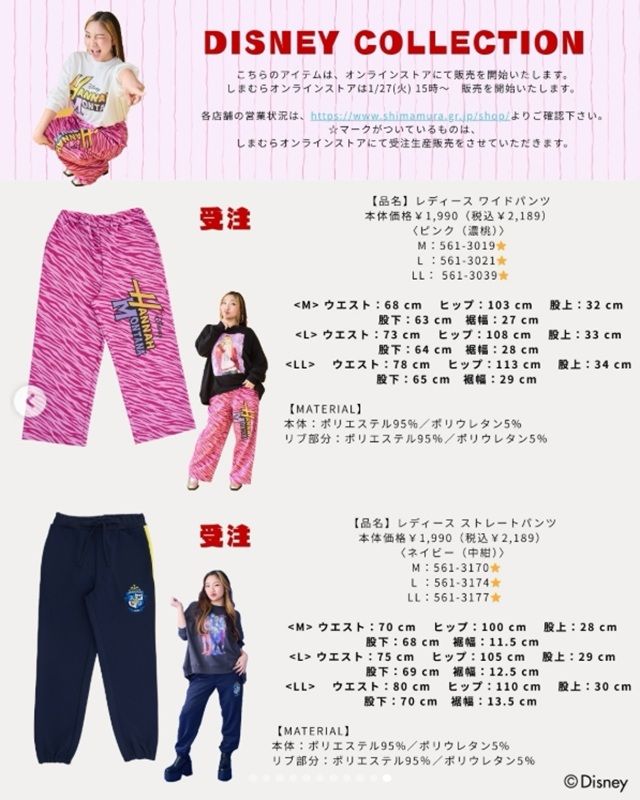 しまむら『アヤノダガネ』コラボ!ディズニーのトレーナー、パンツ、バッグが2026年1月27日(火)より新発売!