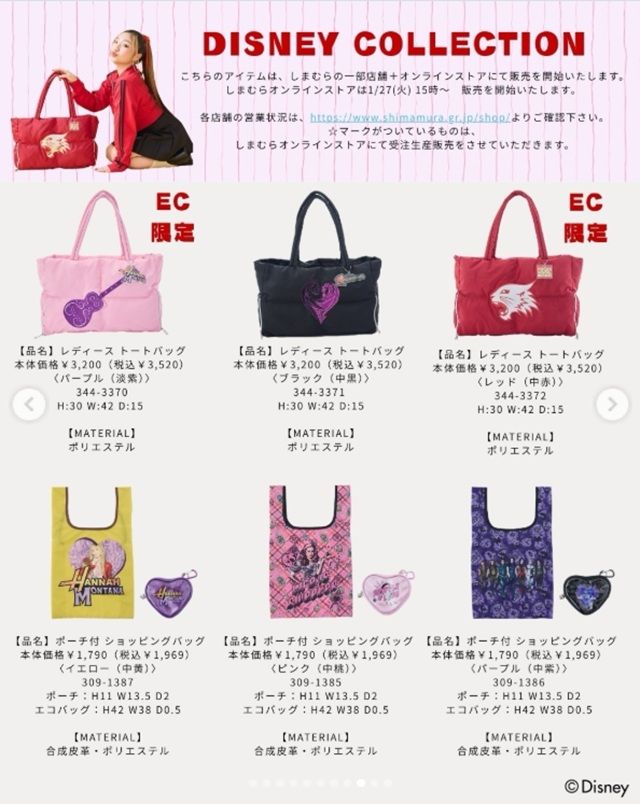 『ハンナモンタナ』『ディセンダント』からスウェットトレーナーとパンツとバッグ、『ハイスクールミュージカル』『ゾンビーズ』『ディセンダント ライズオブレッド』からバッグがラインナップ!