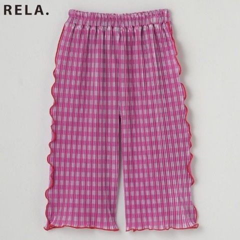 伸縮性のある素材のチェック柄のプリーツパンツです。