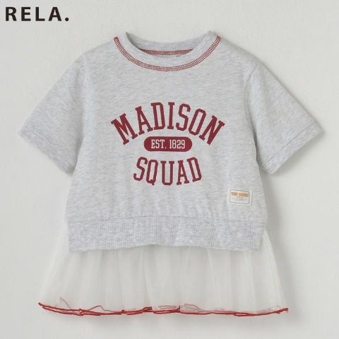 裾部分にチュールがドッキングされた本体綿100%素材の半袖ロゴTシャツです!
