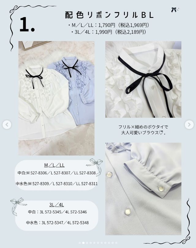 1. 配色リボンフリルBL(ブラウス)