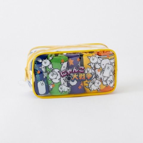 にゃんこ大戦争の靴下5足とクリアポーチのセットです。