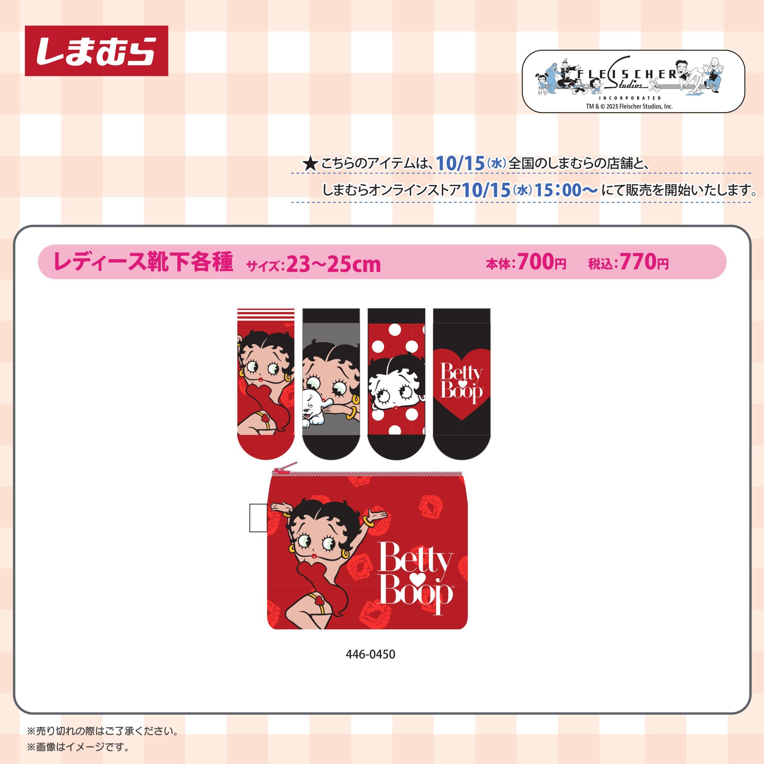 しまむら『ベティちゃん(ベティーブープ)』コラボを2025年10月15日(水)~販売します。ソックスがラインナップ!