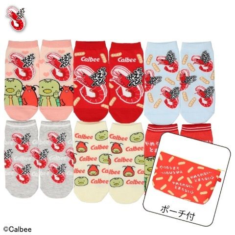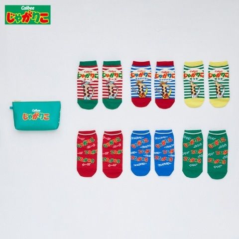 Calbeeじゃがりこのポーチ付き6足組靴下です。