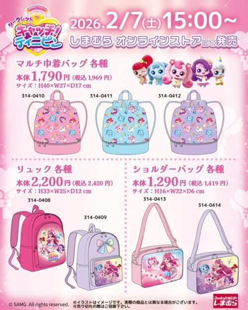 しまむら『ティニピン』コラボを2026年2月7日(土)~販売します。リュック、ショルダーバッグ、巾着バッグがラインナップ!