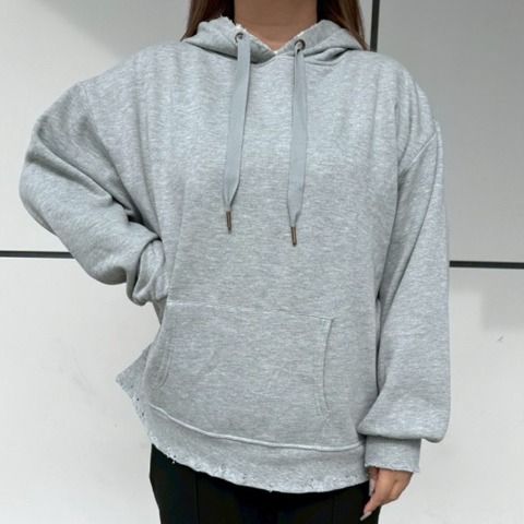 ラフに着られるビッグシルエットのパーカに、クラッシュ加工でこなれ感をプラス。