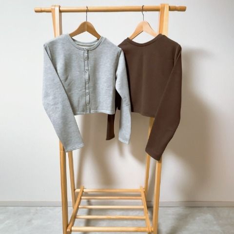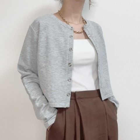 裏微起毛素材でほんのりあたたかい、ショート丈カーディガン。