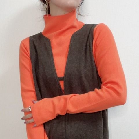 ボトルネックで小顔効果も期待できちゃう優秀トップス♪