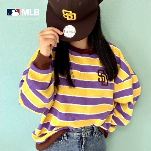 インフルエンサーちまじろさんプロデュース【MLB】の半袖Tシャツが登場★胸のパドレスロゴがワンポイント!ボーダー柄がコーディネートをおしゃれに見せてくれます♪