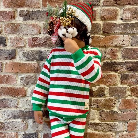 海外のkidsたちがクリスマスシーズンに着てるクリスマスボーダーをモチーフにしたデザインで展開です。