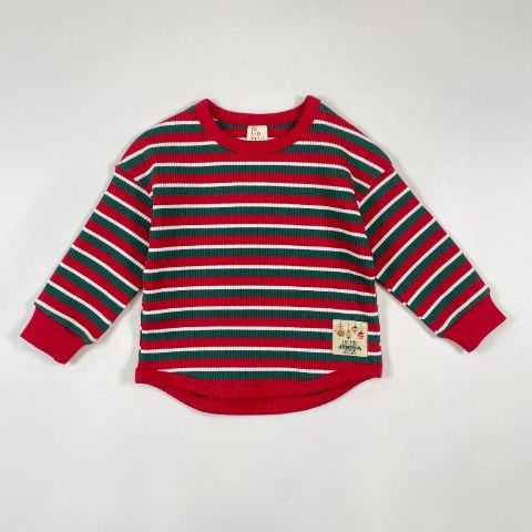 人気のリブ素材にクリスマスカラーのボーダーをのせました!