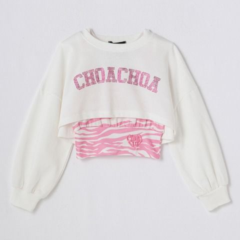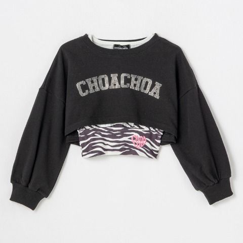 身頃のラインストーンロゴがとっても可愛い綿混素材のプルオーバーとゼブラ柄のタンクトップのセット商品です。