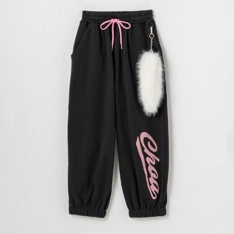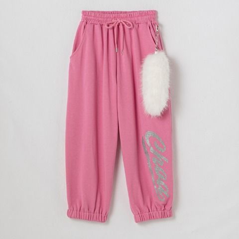 ラメロゴのブランドネームがポイントの綿混素材の裏毛のロングパンツです。