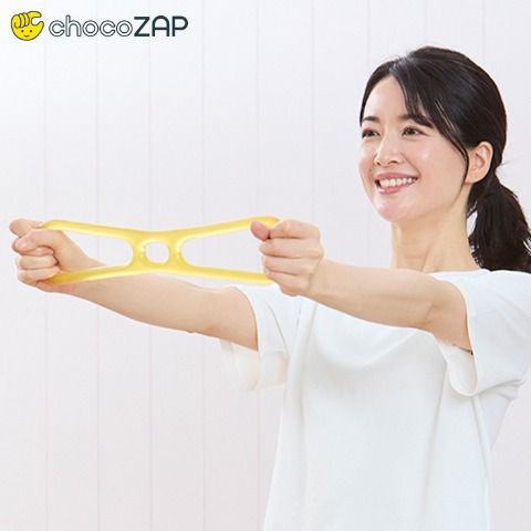 フィットネスジムのchocoZAPから室内や自宅でお手軽、簡単に使用できるトレーニングアイテムが登場! ゴムを伸び縮みさせることで負荷をかけて筋力トレーニング。持ち運びしやすいサイズだからいつでもどこでもちょこっとフィットネス!