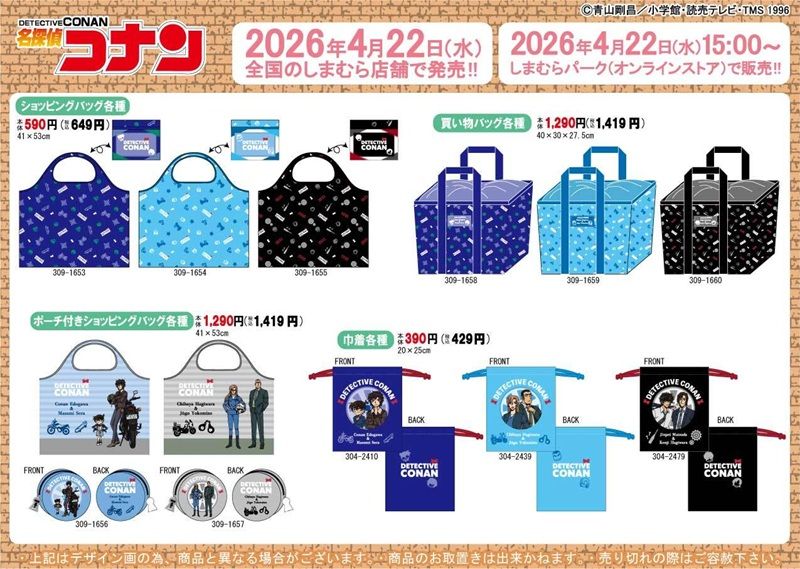 しまむら『名探偵コナン』コラボの新作を、2026年4月22日(水)~販売します。映画『名探偵コナン ハイウェイの堕天使』の公開に合わせたインテリア雑貨、タオル、エコバッグ、巾着、Tシャツなどがラインナップ!