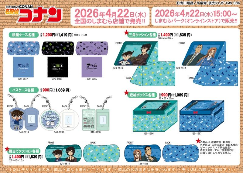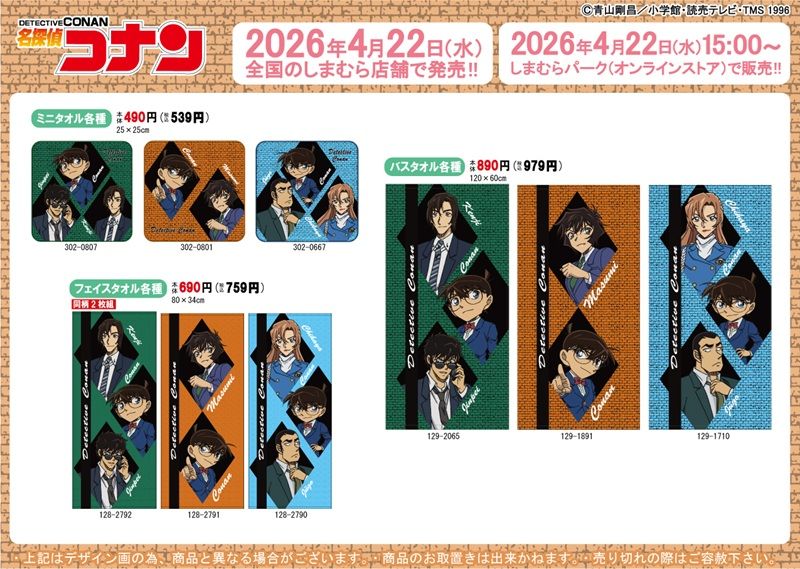 しまむら『名探偵コナン』コラボを2026年4月22日(水)~販売します。映画『名探偵コナン ハイウェイの堕天使』の公開に合わせたインテリア雑貨、タオル、エコバッグ、巾着、Tシャツなどがラインナップ!