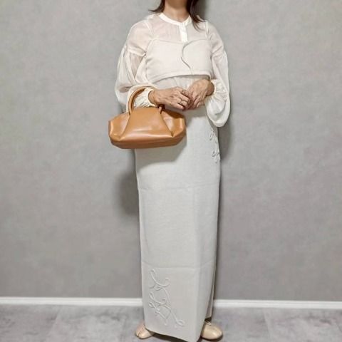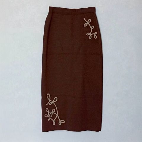 ニットのコード刺繍がポイントのニットナロースカートです。
