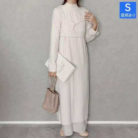 もちもち手触りの良い起毛リブ素材のワンピース&ビスチェのセット。ビスチェは前後2WAYで着用できるので、様々な着回しを楽しめます♪