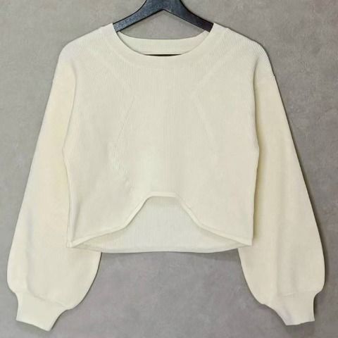 スポンジ素材のショートニットプルオーバー。