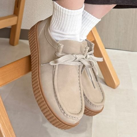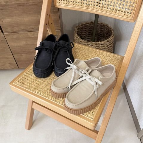 プラットフォームの厚底ソールが印象的なチロリアンデザインのシューズです。スカートにもパンツにも合わせやすいデザインで、ソール部分に適度なボリューム感を持たせる事で、トレンド感もさることながら自然な脚長効果も期待できます。高低差が少ないので安定感があり歩きやすさも◎