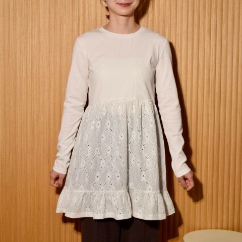 レース切替がガーリーな雰囲気を演出するチュニック。