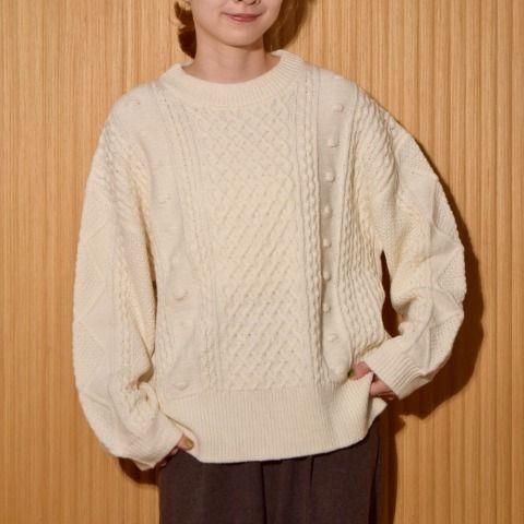 ふっくらケーブル編みがあたたかみたっぷりのニットです。