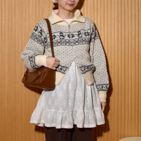 レディース ノルディック柄Wジップニットカーディガン(ちょこび) 2,200円(税込 2,420円)