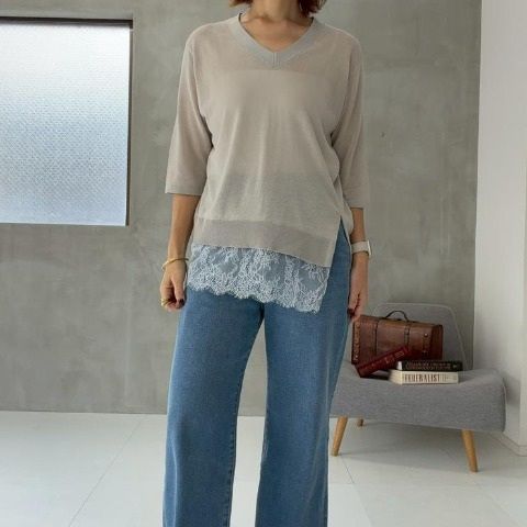 アシンメトリーな裾レースが、気になるお腹や腰回りを優雅にカモフラージュしてくれます。