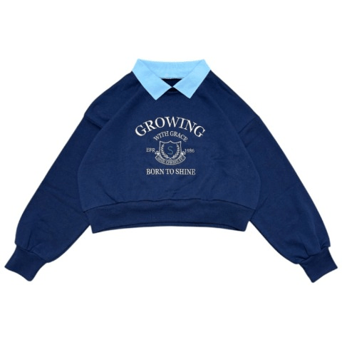 インフルエンサー「ERIKA」とのコラボ商品です。サックスカラーの襟が最旬!フロント部分にはプレッピーな雰囲気のロゴ刺繍が入っており、プレッピー×ガーリーコーデにはマストなアイテムです♪