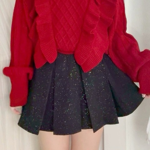 生地にラメ加工を施し、上品なきらめきが魅力のスカート。