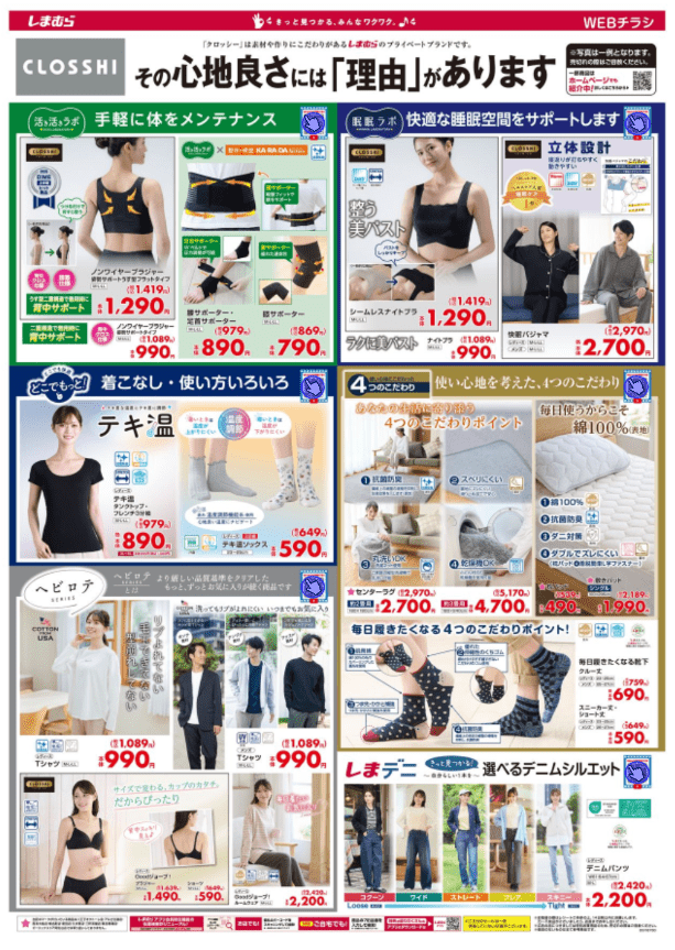 しまむらでは毎週「水曜日」と、「土曜日」などに最新チラシを発行します。目玉商品も充実していて、人気のグッズは発売後即売り切れになることもあります。