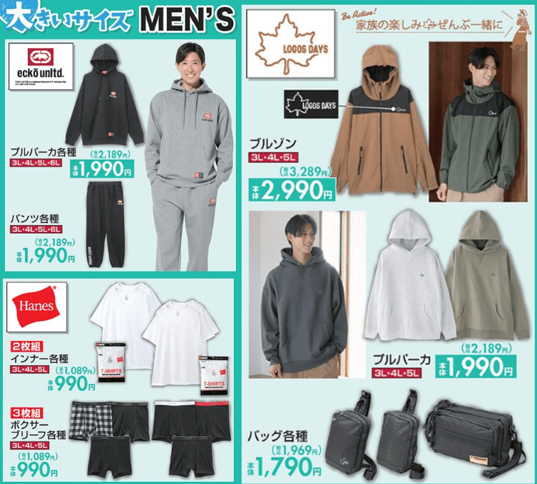 ブランドアイテムから、メンスの大きいサイズのアパレルが販売!