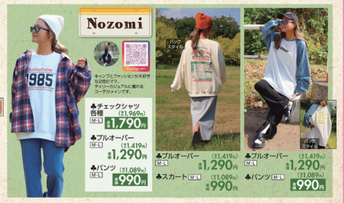 『nozomi(のぞみ)』コラボから、トレーナー、パンツ、スカート、シャツなどの秋冬コーデがラインナップ!