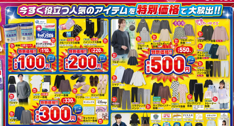しまむらでは毎週「水曜日」と、「土曜日」などに最新チラシを発行します。目玉商品も充実していて、人気のグッズは発売後即売り切れになることもあります。