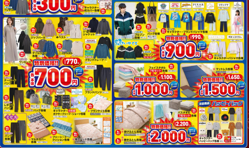 秋アイテムや、パジャマの出っと、バッグ、寝具などもお買い得!
