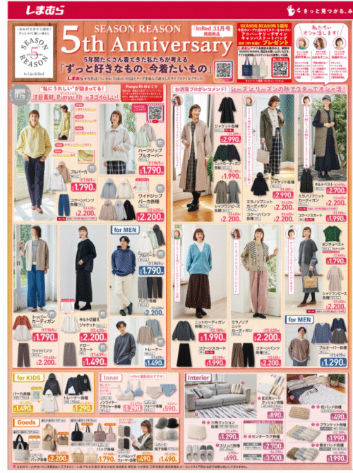 宝島社の女性誌「リンネル」と「InRed」がプロデュースする、SEASON REASON by Lin.&Redの5周年を記念した、新作が大量に発売します!