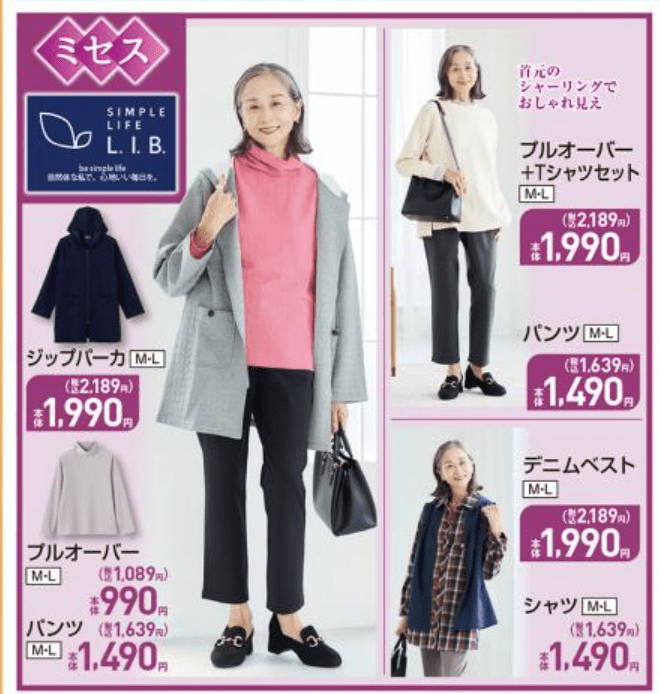 カーディガン、パンツ、スカートなどもお手頃な価格になっています。