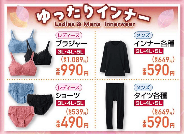ブラジャー、ショーツのレディースの他、インナー、タイツはメンズの冬物も販売します。