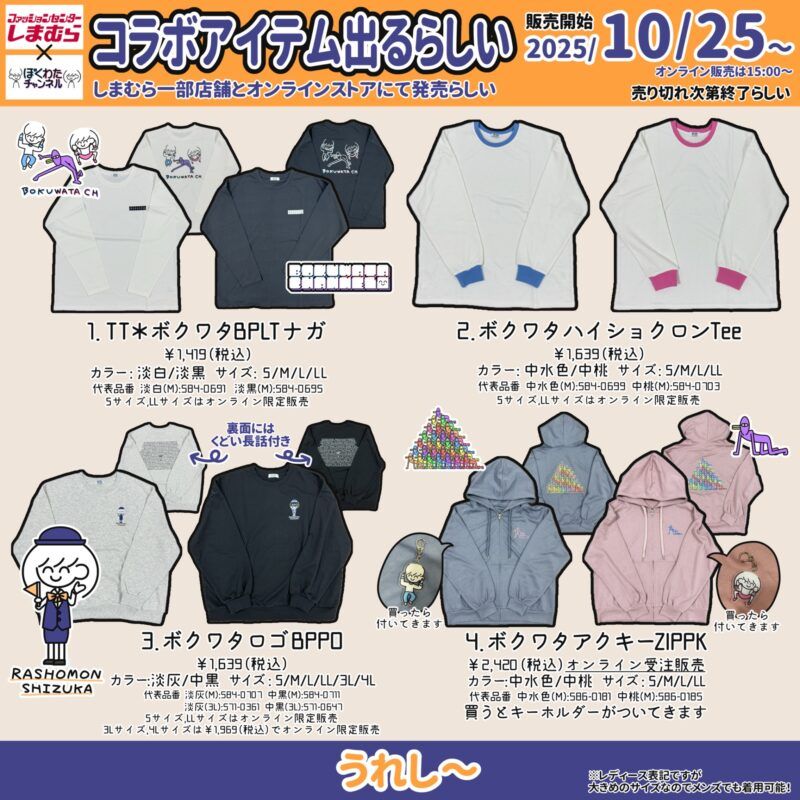 【広告未掲載で発売】しまむら『ぼくわたチャンネル』コラボ 10月25日(土)